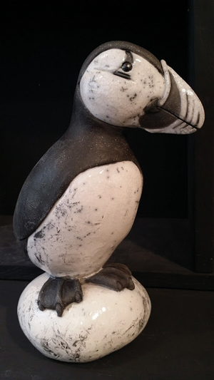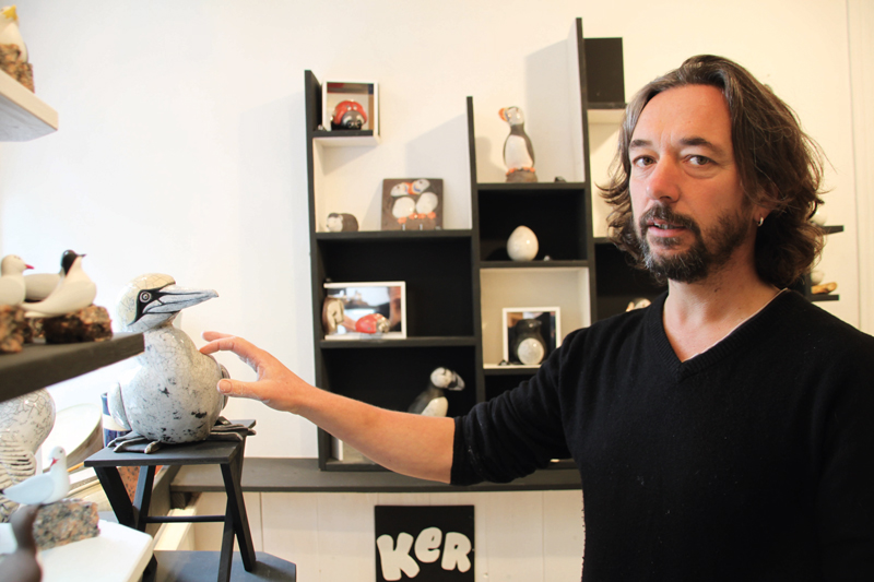 A force de voir passer les oiseaux de mer, l’idée a fini par germer. Au départ, je m’amusais juste à couler du plâtre dans un moule pour faire des macareux, l’emblème local. Comme ça plaisait, l’idée a pris consistance. Je voulais commencer par le bronze, mais mon maître de stage était plus motivé par la céramique, alors…