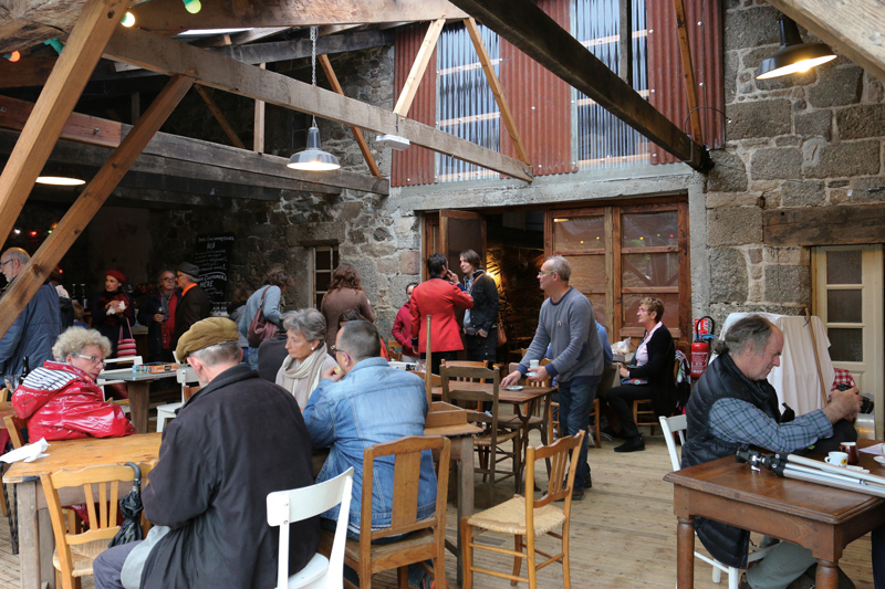 «Nous voulions nous agrandir pour accueillir des événements. Au début, on pensait installer un chapiteau en dur. Mais finalement, nous avons opté pour l’acquisition de ce bâtiment communal dont nous tenions à conserver le côté atelier, indique Flavien. Le mobilier est fait de bric et de broc. Beaucoup nous ont donné des tables, objets, armoires, portes ou chaises que nous avons agencés à notre façon. Sans parler des coups de main des uns et des autres. » Tout cela donne un bel espace atypique avec bar et cheminée où le bois côtoie harmonieusement la pierre. « Il nous reste encore des travaux de confort à réaliser, » poursuit Flavien. Le préau et la cour ouvrent également bien des perspectives.