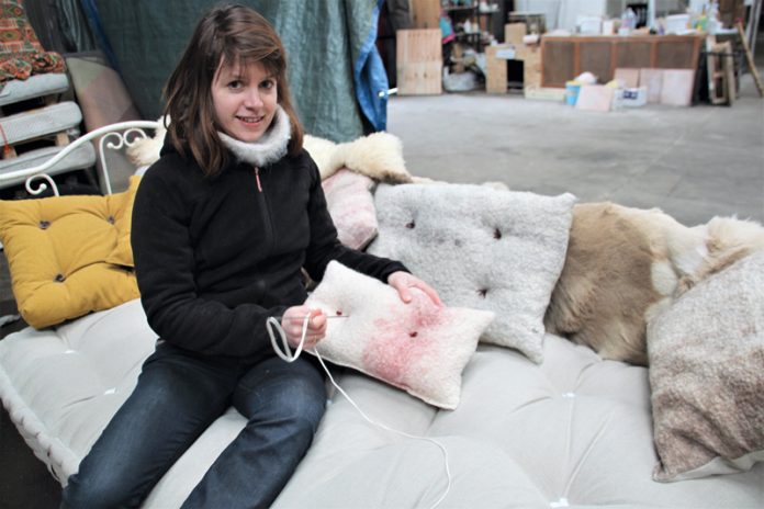 C’est une succession de hasards qui a conduit cette jeune Belforto-bretonne, diplômée d’agronomie, jusqu’à l’ancien garage de Cavan, devenu atelier collectif. Au départ, c’est en se posant des questions sur la matière qu’elle a au bout de ses aiguilles à tricoter. Une matière en fait bien peu pourvue en laine véritable.