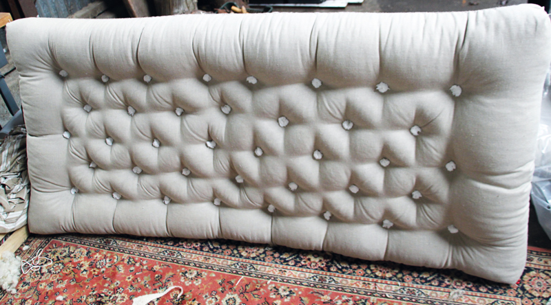 Son travail ? Dénicher de la laine de plein air, non traitée, qu’elle lave et carde. « La cardeuse ouvre la fibre et aspire la poussière. » Pour un matelas, elle utilise une enveloppe de lin bio qu’elle bourre de laine à une densité de 65 kg/m3 (contre 45 d’ordinaire). « Et quand un matelas est fatigué, on peut en repasser la laine à la cardeuse pour lui redonner tonus et propreté. » Ensuite elle coud l’enveloppe puis fixe des points de serrage avec un long carrelet. La méthode s’applique à des densités diverses pour couettes, coussins… Elle travaille sur commande et mesures.