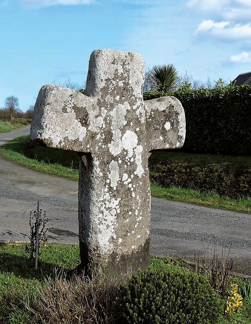 3. D 28 qu’on prend à droite et qu’on longe sur 300 m, avant de prendre la 2ème à gauche vers la Ville-Bague où on effectuera un gauche-droite (attention aux marques). A Saint-Queneuc, on appréciera la croix monolithe, souvent taxée de « carolingienne » alors qu’elle ne remonte probablement qu’au XIIe siècle. Des croix souvent taillées dans d’anciens mégalithes.