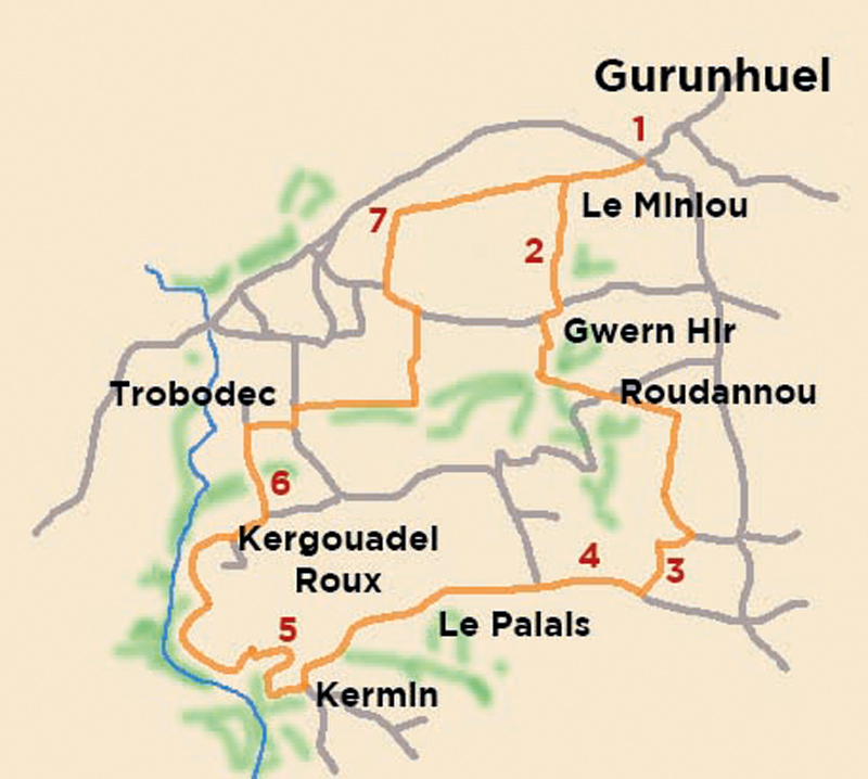 2. Prenez la direction du Miniou, à droite lorsque vous êtes face au café puis à gauche quand vous sortez du parking. Vous apercevez les éoliennes qui tournent et tournent au gré des vents. Prenez à gauche. La chapelle Saint-Fiacre est alors à 3 kilomètres et la vallée du Guer à 6. Vous passez Gwern Hir et Roudannou. Soyez vigilant et faites bien attention au balisage. Ce n’est pas toujours évident.