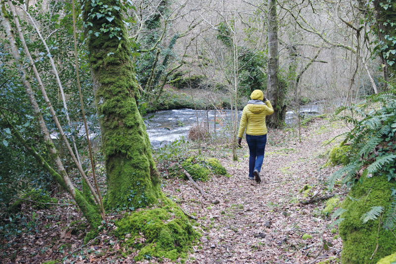 5. Arrivé à une maison à la haie parfaitement taillée (juste après l’incription «Harry’ Place» visible au dessus de la fenêtre d’une longère), tournez à droite. Peu après, mais là encore soyez très attentif, prenez à droite. Vous découvrez alors la vallée du Guer.