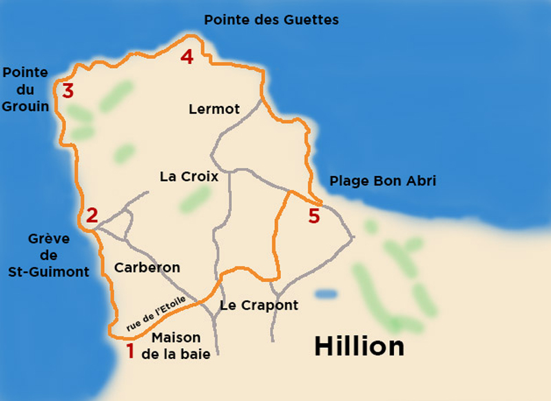 1. Départ de la Maison de la Baie d’Hillion, très bien indiquée à partir du bourg. Vous trouvez le sentier sur la gauche de la dite maison.