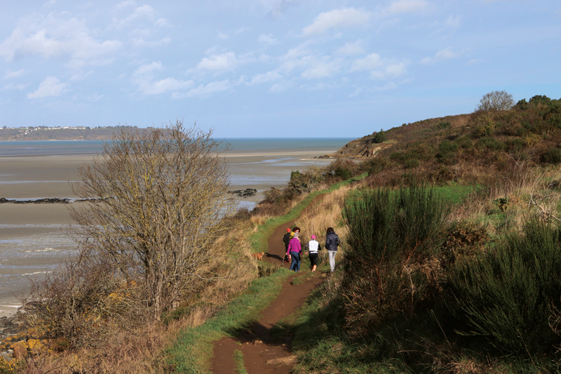 7,4 km pour 1h45 de balade, assez facile, bon balisage blanc et rouge sur le littoral et direction « Maison de la baie » (avec une flèche et 2 randonneurs) par ailleurs.