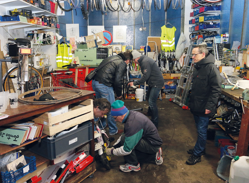 Cet endroit a tout du paradis pour les adhérents de Vélo Utile. Ce mercredi, ils sont six ou sept à s’activer parmi les vélos et les outils dans l’atelier de la rue du Légué. D’habitude, ils sont un peu plus nombreux.