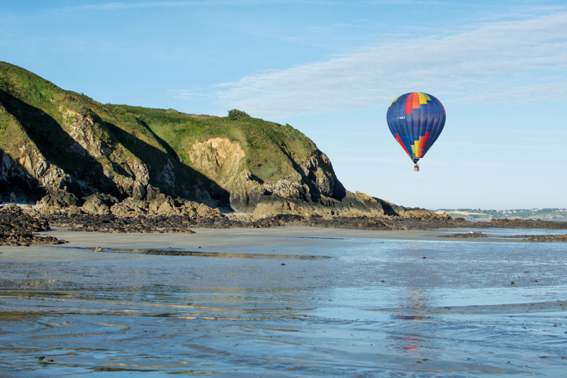 L’aventure de trois heures débute par une vérification météo, le gonflage de la toile, au ventilateur puis au brûleur. On prend ensuite place dans la nacelle en osier et le ballon s’élève, de 500 à 1000 mètres. Le point de départ dépend du vent. Souvent au château de Bogard ou aux Ponts-Neufs.