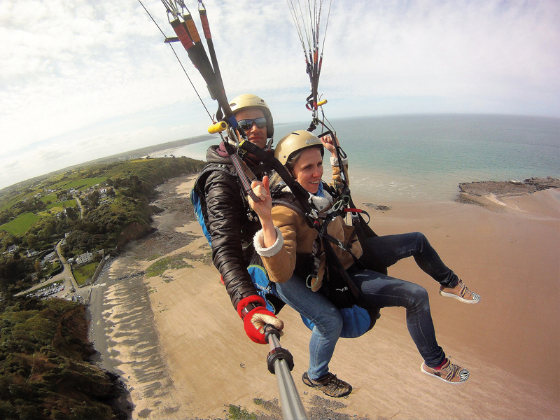 Le sourire crispé se détend peu à peu. Barbara accepte même quelques relatives acrobaties. « Il faut un bon niveau pour ça. Si on n’est pas dans le bon timing, la voile peut se refermer, » note Gwenaël qui n’en confie pas moins les commandes à sa copilote. « C’est simple, résume celle-ci à son retour, ça tourne du côté où tu tires, » tout en atterrissant en douceur, ravie et visiblement reprise de couleurs.
