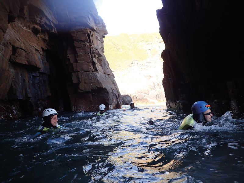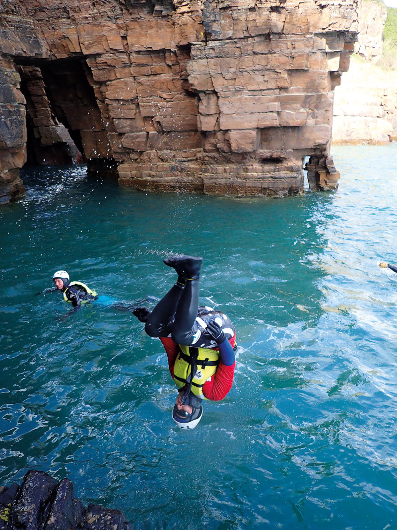 C’est une sorte de canyoning aquatique venu du Pays de Galles, parfaitement adapté à nos côtes, notamment aux falaises de Plouha. Pour une première, même pas froid ! Ni aux yeux, ni au reste.