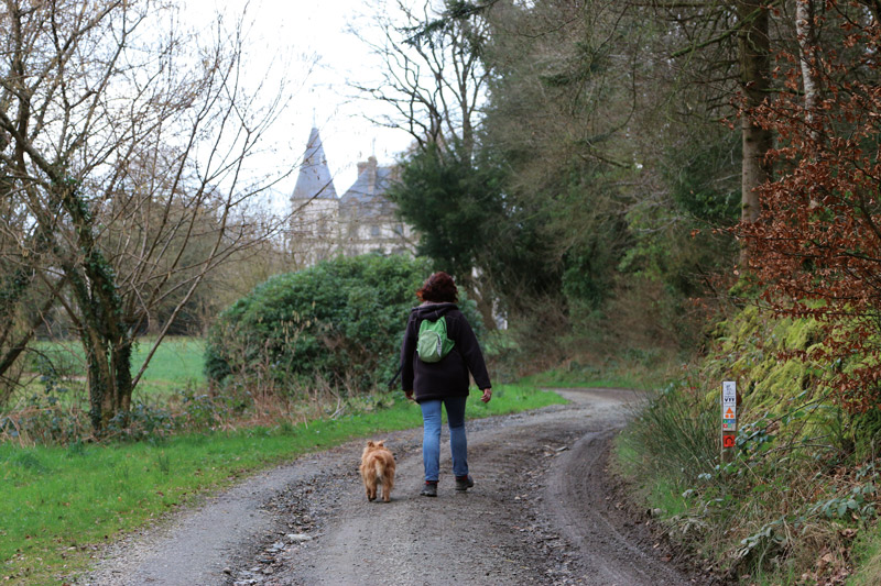 4. Vous poursuivez en contournant l’église et continuez vers le château de Coat an Noz. Vous découvrez assez vite l’imposant édifice construit par la fameuse Lady Mond.