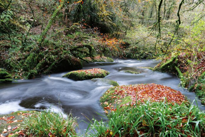 4. Poursuivez encore et encore sur ce paisible sentier avant de prendre à droite. Vous longez ensuite un ruisseau. Il y a un peu plus loin une voie qui enjambe la rivière : ignorez-la et continuez à droite, toujours le long du cours d’eau. Vous apercevrez de temps à autre de beaux blocs de pierre par-ci, par -là.