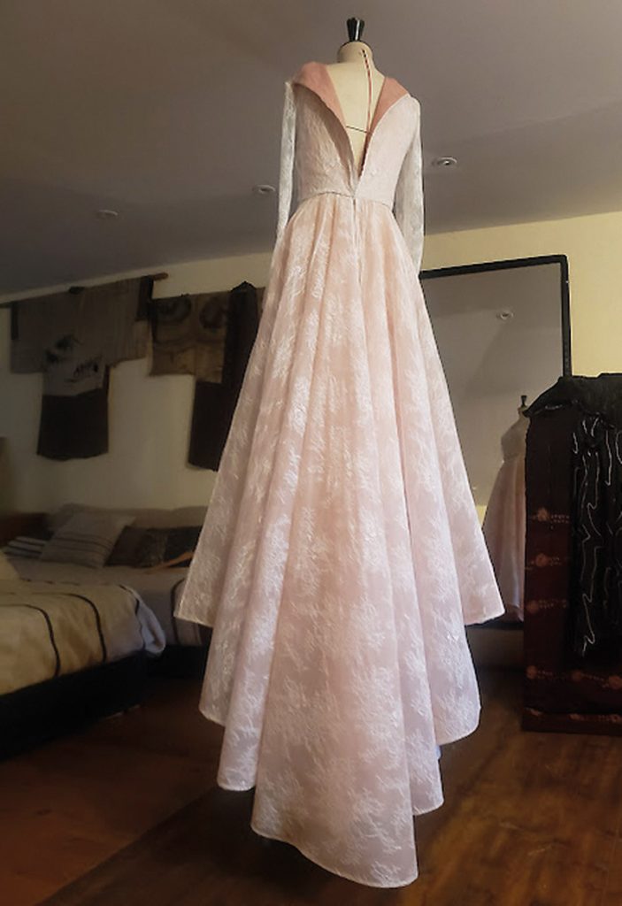 Et la voici donc, un peu par hasard, à Paimpol où elle fonde (il y a dix ans) Ysengrin, atelier de couture sur mesure. « Au tout début, il y a eu les retouches puis, très vite, les robes et costumes de mariés puis les demandes particulières. » Quelque peu élitiste au départ, sa clientèle se démocratise rapidement. Pour celle-ci, un achat chez Ysengrin est tout de même une véritable expérience car tout y est pensé dans les moindres détails : du choix des tissus aux essayages, parfois plusieurs heures, en passant par une prise de mesures d’une précision extrême. Et bien sûr, le résultat est à la hauteur des espérances les plus élevées. « Il existe toujours une coupe à même de mettre en valeur une silhouette, quelle que soit la morphologie. »
